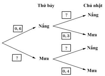 ở sơ đồ hình cây bên dưới và tính xác suất trời mưa vào thứ Bảy và trời nắng vào Chủ nhật.