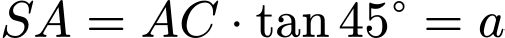 và mặt phẳng đáy bằng 45°. Tính khoảng cách giữa hai đường thẳng