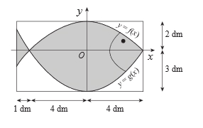 Câu 25 [1081479]: Hoạ sĩ thiết kế logo hình con cá cho một doanh nghiệp kinh doanh hải sản. Logo là hình phẳng giới hạn bởi hai parabol với các kích thước được cho trong hình vẽ (đơn vị trên mỗi trục toạ độ là deximet).
