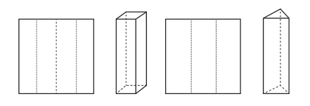 Câu 10 [1082865]: Từ một mảnh giấy hình vuông cạnh là a, người ta gấp nó thành 4 phần bằng nhau rồi dựng lên thành một hình lăng trụ tứ giác đều. Từ một mảnh giấy hình vuông khác cũng có cạnh là a, người ta gấp nó thành 3 phần bằng nhau rồi dựng lên thành một hình lăng trụ tam giác đều. Gọi