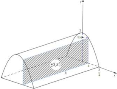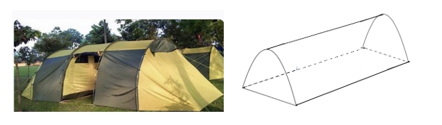 Nhân dịp đi dã ngoại, lớp 12A dự kiến dựng một cái trại các khung xương có dạng hình parabol như hình vẽ. Nền của lều trại là một hình chữ nhật có kích thước bề ngang 3 mét, chiều dài 5 mét, đỉnh trại cách nền 3 mét.