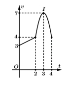 có đồ thị của vận tốc như hình vẽ. Trong khoảng thời gian 2 giờ kể từ khi bắt đầu chuyển động nhanh dần, đồ thị là một phần của đường thẳng. Khoảng thời gian còn lại đồ thị là một parabol có đỉnh