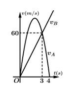 Câu 24 [1081555]: Cho đồ thị biểu diễn vận tốc của hai xe A và B khởi hành cùng một lúc, bên cạnh nhau và trên cùng một con đường. Biết đồ thị biểu diễn vận tốc của xe A là một đường Parabol, đồ thị biểu diễn vận tốc của xe B là một đường thẳng ở hình vẽ.