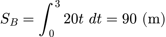 Quãng đường đi được của mỗi xe là nguyên hàm của vận tốc: