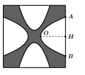 Câu 22 [1081575]: Một hoa văn trang trí được tạo ra từ một miếng bìa mỏng hình vuông cạnh 10 cm bằng cách cắt bỏ đi bốn phần bằng nhau có hình dạng parabol như hình vẽ. Biết rằng