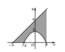 Câu 8 [1081448]: Đường cong trong hình vẽ bên là một Parabol. Diện tích phần tô đậm trong hình bằng
