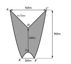 Câu 22 [1081578]: Ông Tuấn làm một logo bằng tấm nhựa phẳng, có hình dạng là một hình có trục đối xứng. Biết đường viền AE, CF ở hai bên là hai nhánh của một parabol và phần lõm EIF phía dưới đáy cũng là một parabol, hai nhánh phía trên là hai đoạn thẳng như hình vẽ. Cho biết