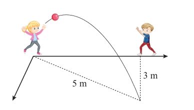 Hai đứa trẻ đang chơi với một quả bóng. Bé gái ném quả bóng cho bé trai. Quả bóng di chuyển trong không khí, uốn cong 3 m về bên phải và rơi cách bé gái 5 m.
