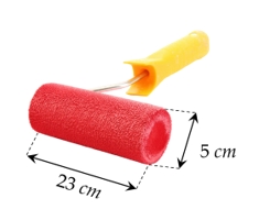Dựa vào dữ kiện: Đường kính của đường tròn đáy trục lăn là 5 cm, chiều dài trục lăn là 23 cm (hình vẽ).