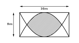 Câu 21 [1081579]: Một mảnh vườn toán học có dạng hình chữ nhật, chiều dài là 16 m và chiều rộng là 8 m. Các nhà Toán học dùng hai đường parabol, mỗi parabol có đỉnh là trung điểm của một cạnh dài và đi qua 2 mút của cạnh dài đối diện, phần mảnh vườn nằm ở miền trong của cả hai parabol (phần gạch sọc như hình vẽ minh họa) được trồng hoa hồng.