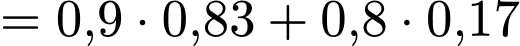 Tại một phòng khám chuyên khoa tỷ lệ người đến khám có bệnh là 83%. Theo thống kê biết rằng nếu chẩn đoán có bệnh thì đúng tới 90%, còn nếu chẩn đoán không bệnh thì chỉ đúng 80%. Xác suất chẩn đoán đúng là __________.