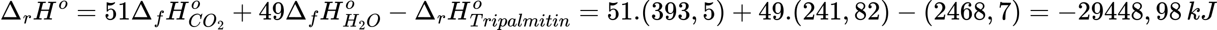 Tripalmitin(s) + 72,5O2(g) → 51CO2(g) + 49H2O(g)