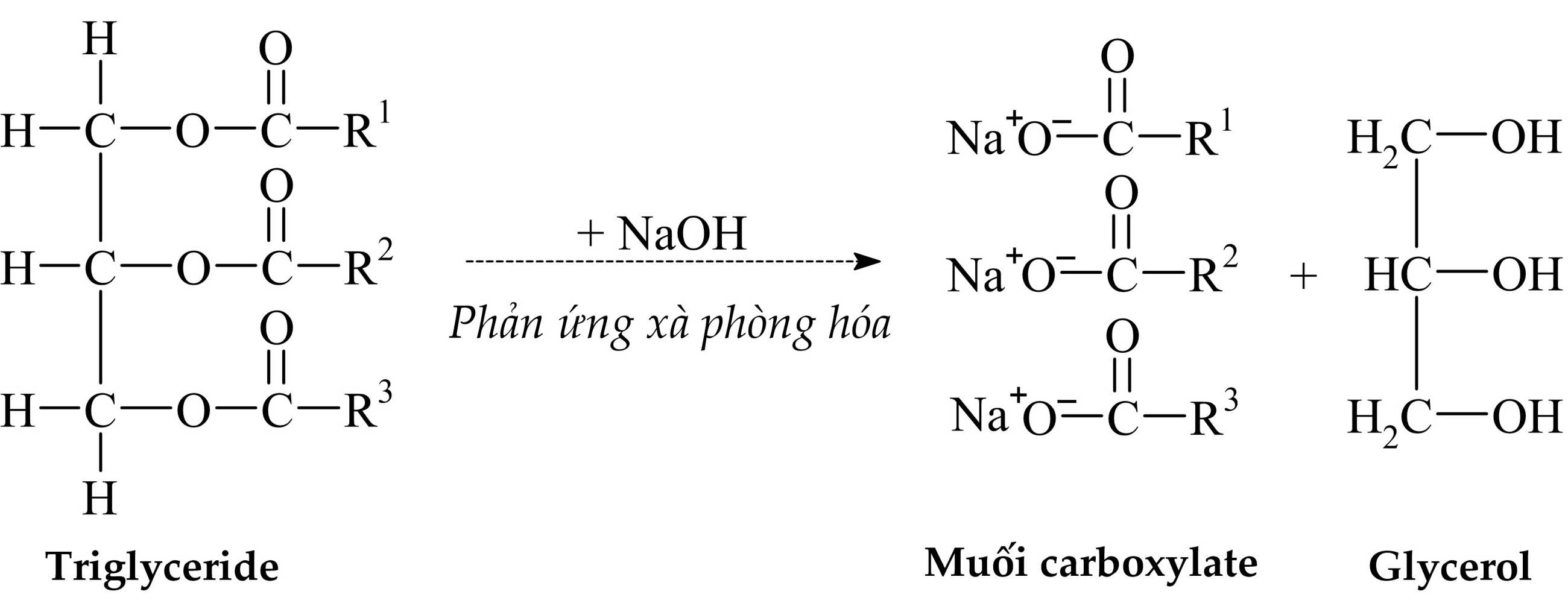 (RCOO)3C3H5 + 3NaOH ––to→ 3RCOONa + C3H5(OH)3.