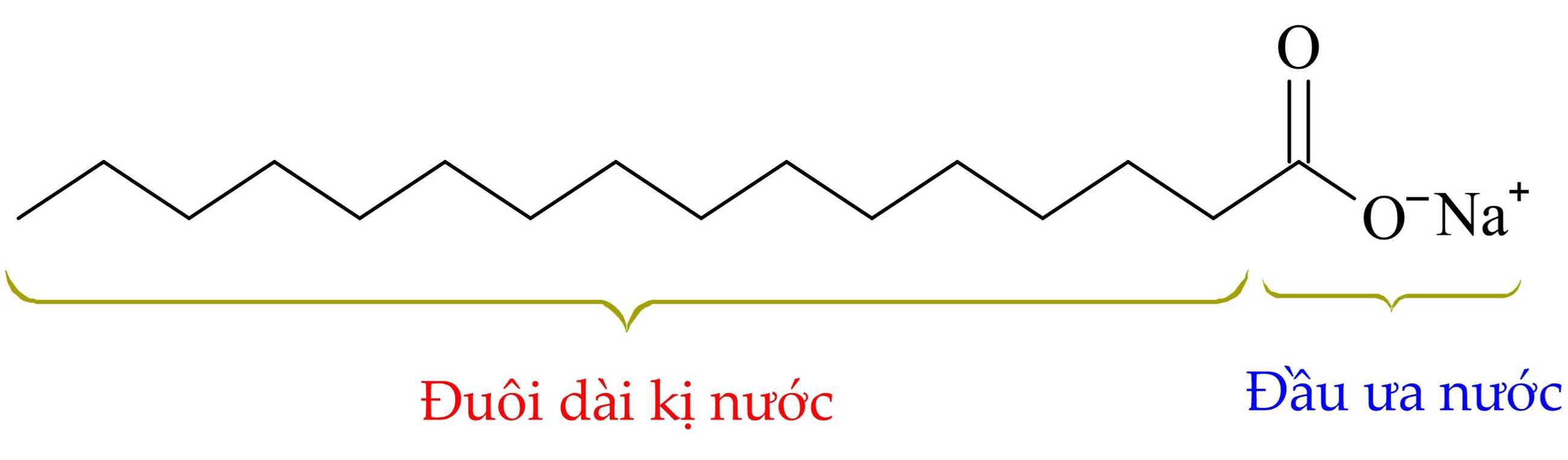 HD: Muối sodium với một gốc acid béo sẽ tạo thành một loại phân tử xà phòng dạng RCOONa