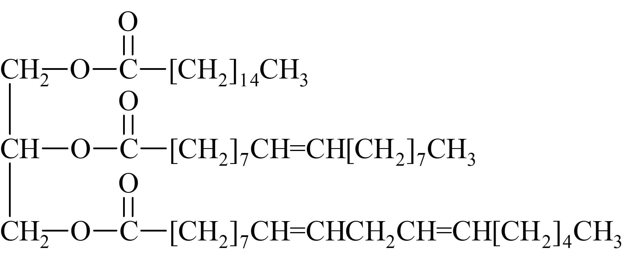 HD: ► Chất béo đã cho được tạo từ 3/4 gốc acid béo quen thuộc (cần nhớ trong chương trình THPT) ⇒ ta nhận diện ra ngay đó là: 1 gốc palmitate; 1 gốc oleate và 1 gốc linoleate.