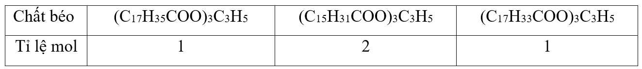 Câu 42 [1010349]: Một nhà máy sản xuất xà phòng từ mỡ lợn chứa các chất béo, có tỉ lệ số mol như sau: