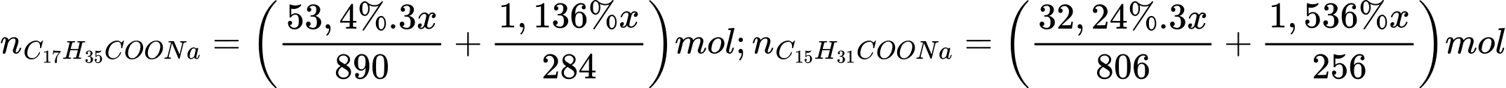 c) Đặt số mol của (C17H35COO)3C3H5; (C15H31COO)3C3H5; (C17H33COO)3C3H5 lần lượt là x; 2x và x mol