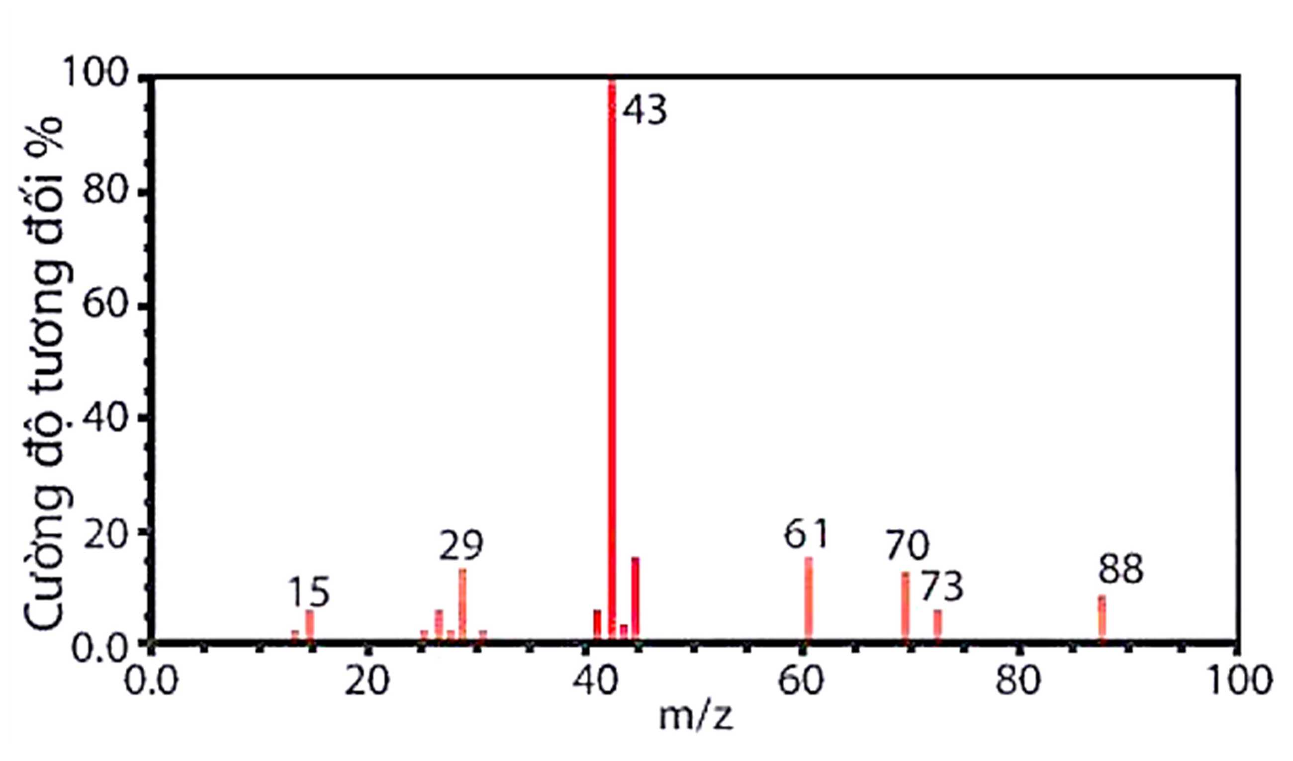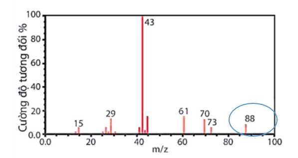 Từ phổ khối lượng, X có khối lượng phân tử là 88 amu