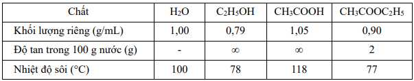 Câu 45 [1009544]: Khi nghiên cứu đặc điểm của phản ứng ester hoá để tổng hợp ethyl acetate, một nhóm học sinh dự đoán “nhiệt độ càng cao, hiệu suất phản ứng ester hoá càng cao”. Từ đó nhóm học sinh tiến hành thí nghiệm tổng hợp ethyl acetate với nồng độ ethyl alcohol và acetic acid không đổi nhưng thay đổi nhiệt độ phản ứng để kiểm tra dự đoán trên như sau:
