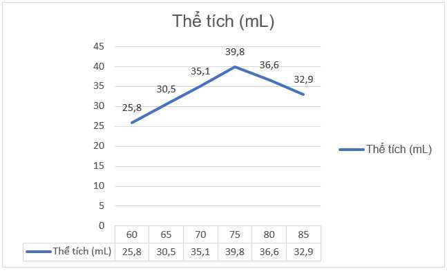 Nguyên nhân: Khi tăng nhiệt độ từ 60 đến 75 oC lượng ethyl acetate thu được tăng dần từ 25,8 mL đến 39,5 mL, nhưng nhiệt độ tăng từ 75 đến 85 oC lượng ethyl acetate thu được giảm dần từ 39,5 mL đến 39,2 mL.