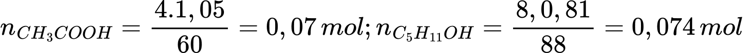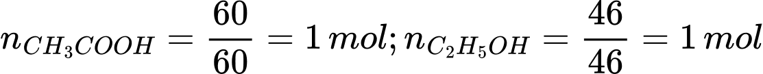 CH3COOC2H5 + H2OSố mol của acetic acid và ethyl alcohol lần lượt là