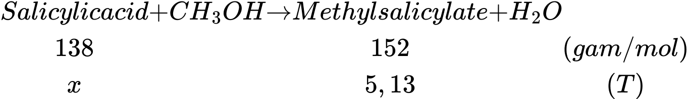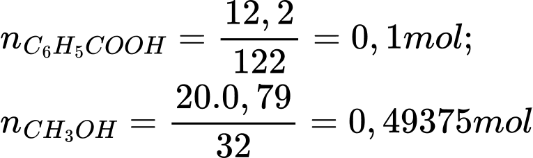 Số mol của benzoic acid và methanol là