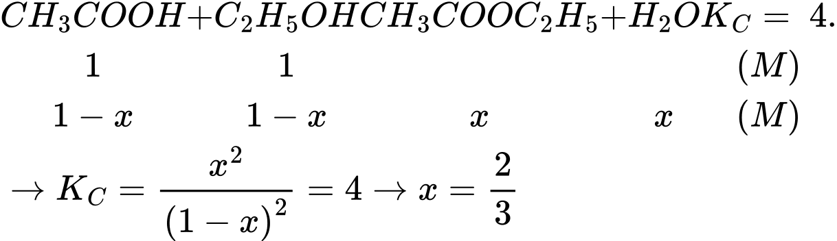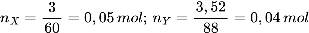 Số mol của acetic acid và ethyl alcohol lần lượt là