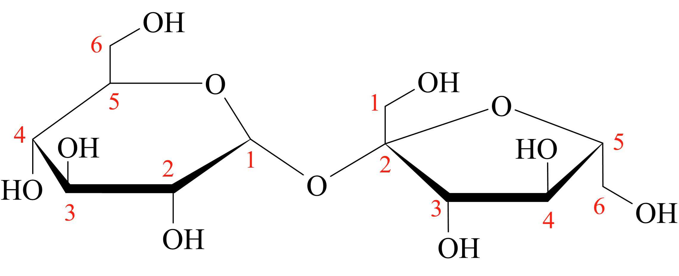 - Saccharose (C12H22O11) là một disaccharide gồm glucose và fructose liên kết bằng liên kết glycosidic.