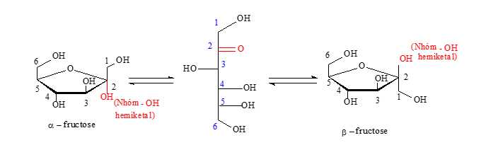 + Ở dạng mạch vòng 6 cạnh là α-glucose và β-fructose.