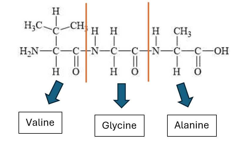 Peptide Y được tạo nên bởi 3 amino acdi, có tên là Val - Gly - Ala.