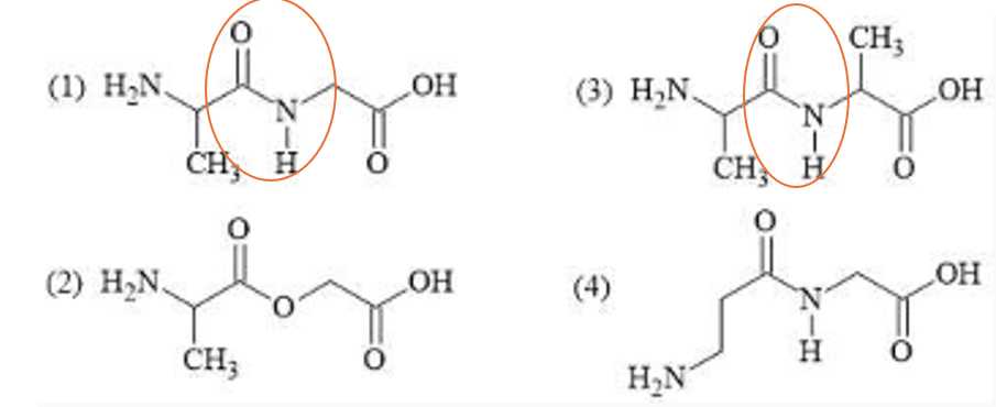 Trong các hợp chất trên, những hợp chất nào thuộc loại dipeptide?