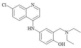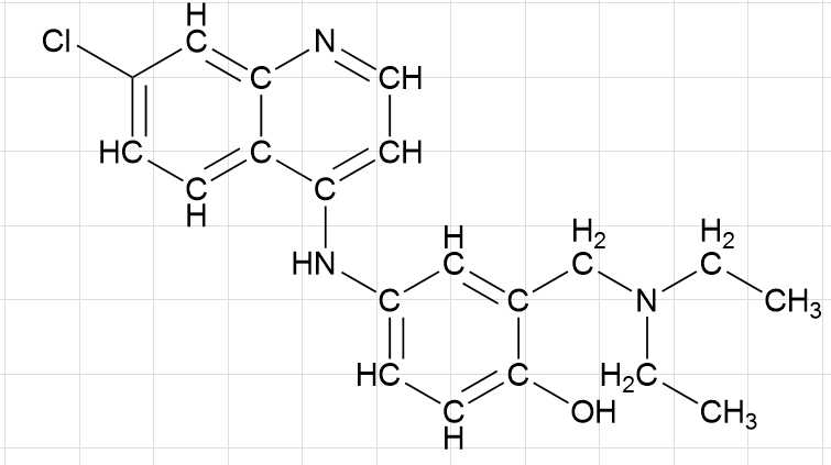 Câu 22 [1009865]: Amodiaquine thường được sử dụng để điều trị bệnh sốt rét. Cấu tạo của amodiaquine như hình bên. Số nguyên tử H có trong amodiaquine là bao nhiêu?
