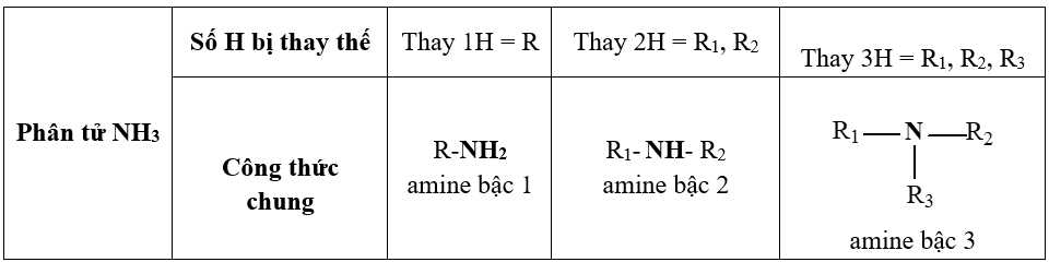Khi thay thế một hay nhiều nguyên tử H trong phân tử NH3 bằng gốc hydrocarbon thì thu được amine.