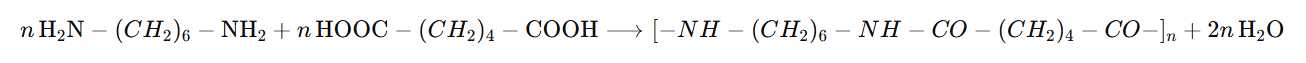 nHOOC-[CH2]4-COOH + nH2N-[CH2]6-NH2 -to,p,xt→NH-[CH2]6-NH-CO-[CH2]4-COn + 2nH2O