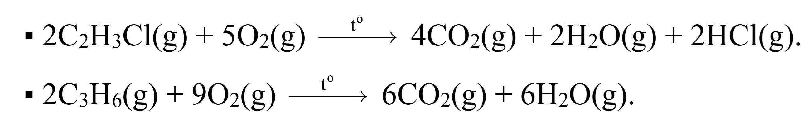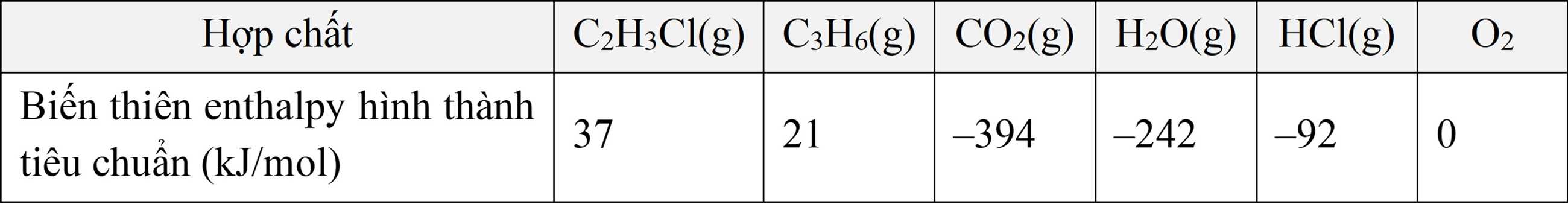 Khi tìm hiểu về nhiệt lượng tỏa ra của các chất. Trong một thí nghiệm riêng biệt, học sinh đo enthalpy của quá trình đốt cháy propene và vinyl chloride.