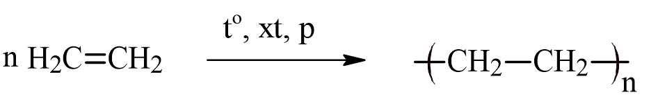 nH2C=CH2 –to, xt, p⟶ –(CH2-CH2)–n