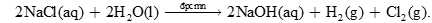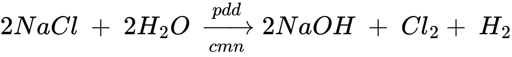 Phương trình điện phân: 2NaCl + 2H2O ➝ 2NaOH + H2 + Cl2.