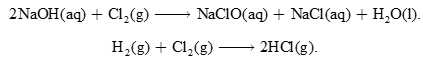 Như bạn có thể thấy, phản ứng này tạo ra hai sản phẩm phụ hữu ích là NaOH và H2. Các bình điện phân được thiết kế để tách khí chlorine ra khỏi dung dịch sodium hydroxide và khí hydrogen để ngăn chặn các phản ứng phụ như: