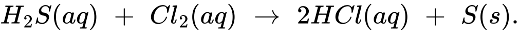 Câu 35 [560591]: Mùi hôi của nước chứa hydrogen sulfide H2S có thể được loại bỏ nhờ tác dụng của chlorine. Phản ứng xảy ra: