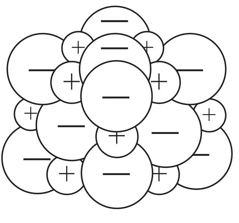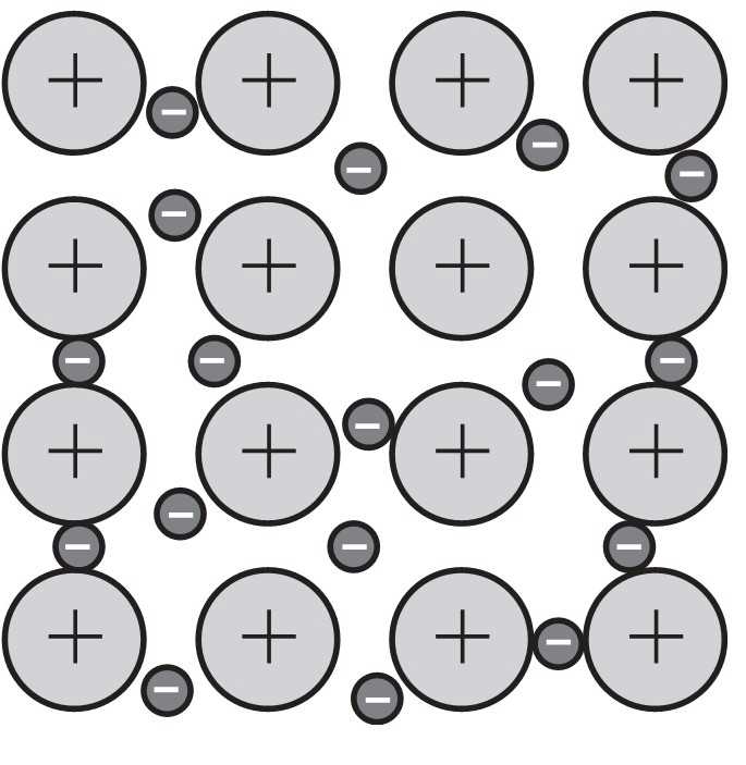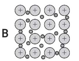 Câu 22 [560630]: Mô hình mô tả khái quát cation kim loại và các electron hoá trị tự do trong tinh thể kim loại