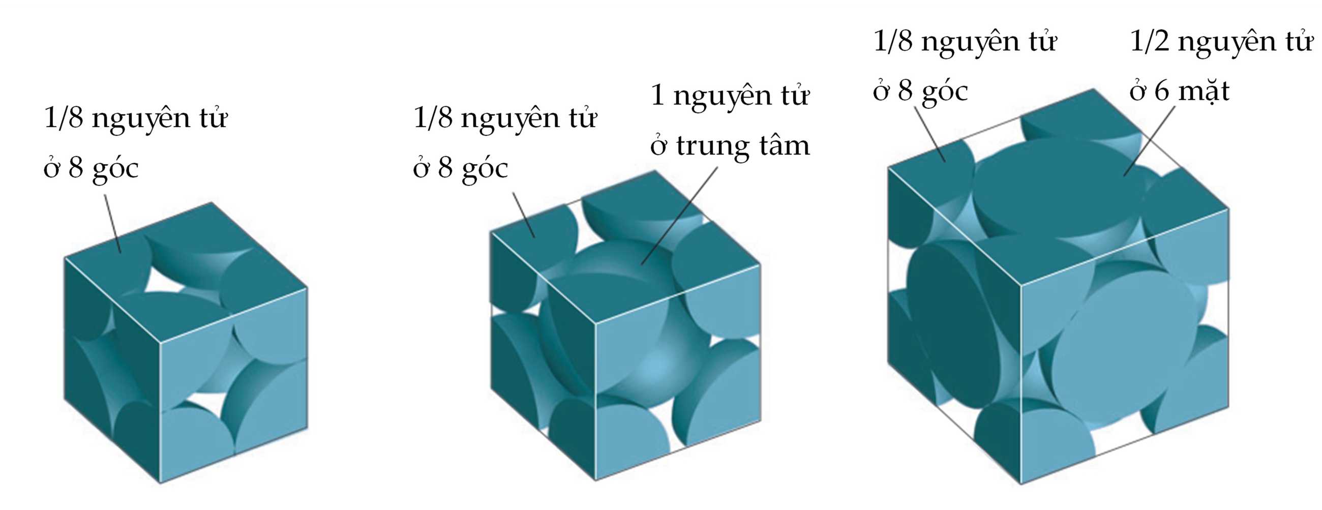 ⇝ 8 (nguyên tử ở đỉnh) × 1/8 + 1 (nguyên tử tâm khối) = 2 (nguyên tử).