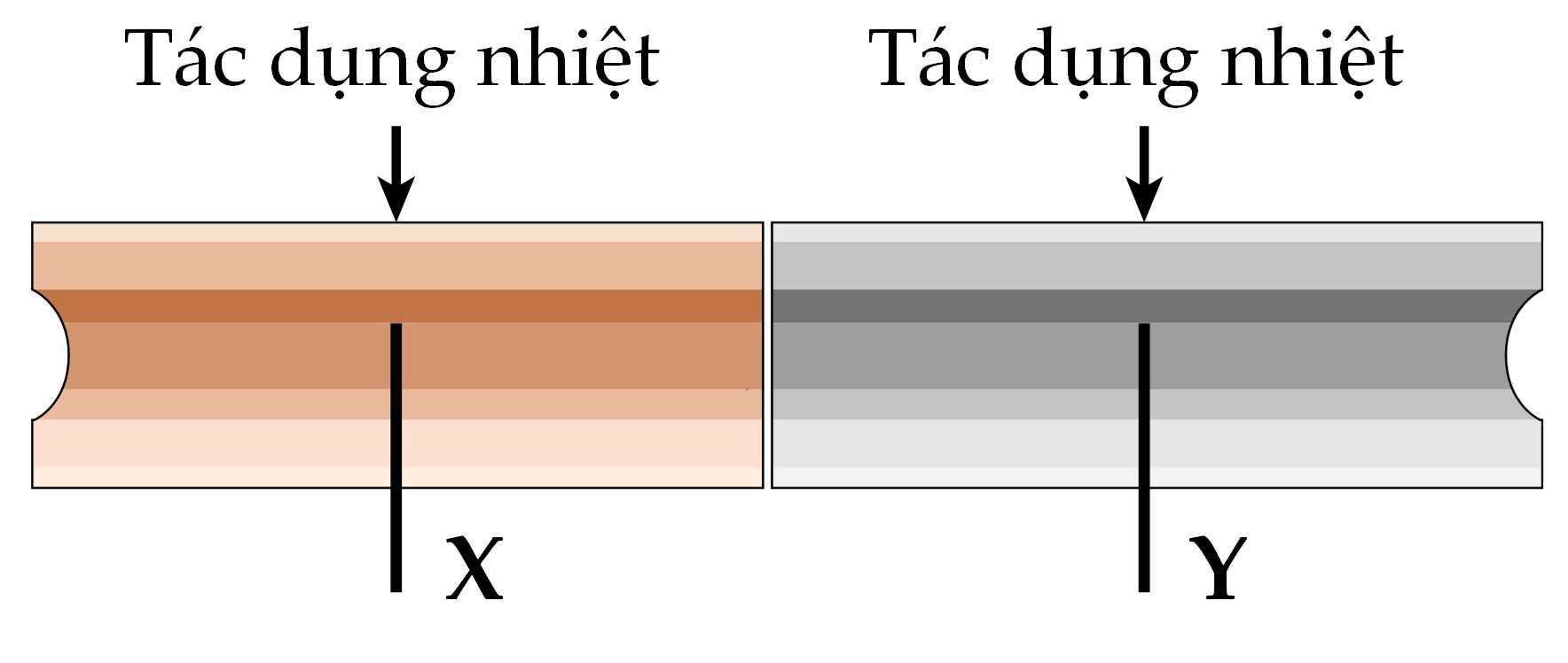 Câu 46 [1016790]: Một nhóm nghiên cứu của công ty phát triển đường ray muốn phát triển một loại vật liệu có khả năng chịu được nhiệt độ cao, không bị biến dạng. Nhóm nghiên cứu thực hiện các thí nghiệm liên quan đến hai kim loại như thể hiện trong sơ đồ dưới: