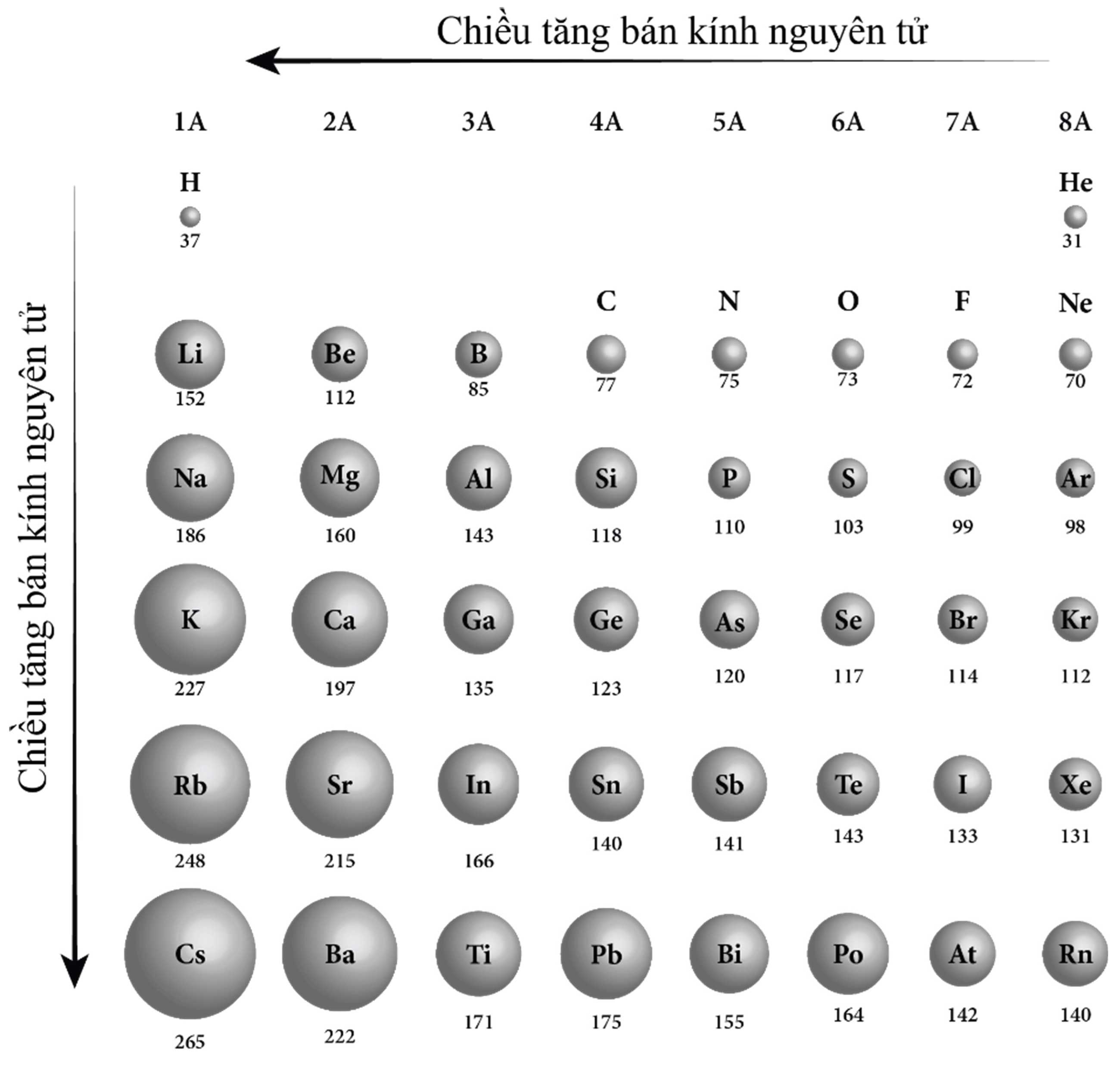 Hình 3. Xu hướng biến đổi bán kính nguyên tử của các nguyên tố nhóm chính