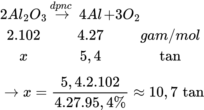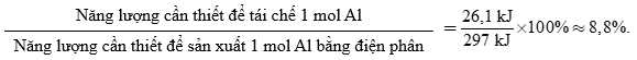 = 37037,04 mol=> Năng lượng cần để tái chế 1 tấn Al là 37037,04 . 26,1 = 9,67 . 105