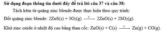 Câu 71 [1016802]: Trên thế giới, zinc (kẽm) được sản xuất từ quặng zinc blende. Thành phần chính của quặng zinc blende là ZnS.