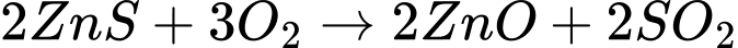 +) Đốt quặng zinc blende: 2ZnS + 3O2