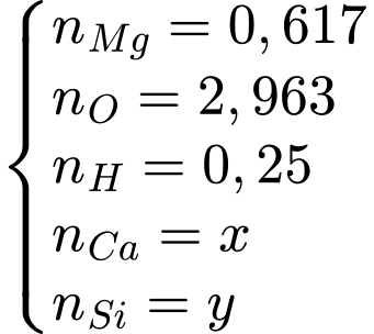 → n(K) = 0,36; n(Mg) = 0,36; n(O) = 2,1625; n(H) = 4,32