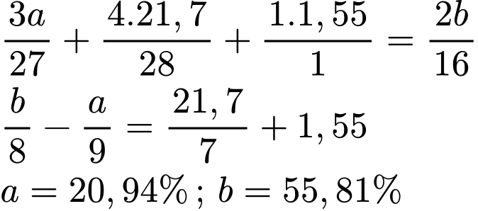 Ta có : a+ b= 100% - ( 21,7% + 1,55 % ) = 76,75% (1).