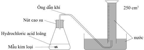 Câu 41 [1016761]: Sơ đồ dưới đây là các thiết bị được sử dụng để thu thập và đo thể tích khí hydrogen thoát ra khi một mẫu kim loại nhóm IIA phản ứng với hydrochloric acid loãng: