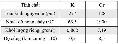 ✔️ D. Độ âm điện của Ti (1,54) lớn hơn K (0,82).